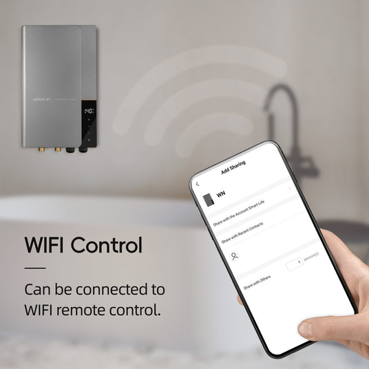 The WN27 features a compact (19.1" x 4" x 11.1") and wall-mountable design. Its standard 3/4-inch interfaces ensure seamless connection, and the built-in Wi-Fi control allows you to adjust the temperature remotely with ease.