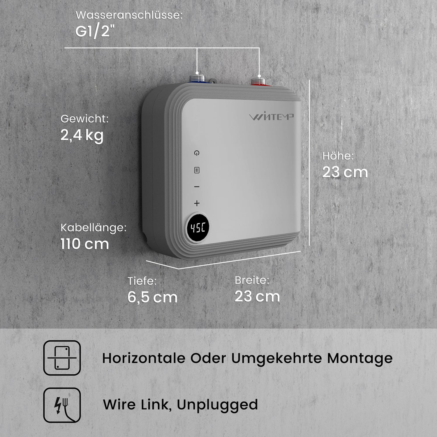Dites adieu à l'attente ! Le WINTEMP KFU65 fournit instantanément de l'eau chaude à une température précise de 73 °F ou plus, assurant un confort constant pour vos éviers, baignoires et autres.