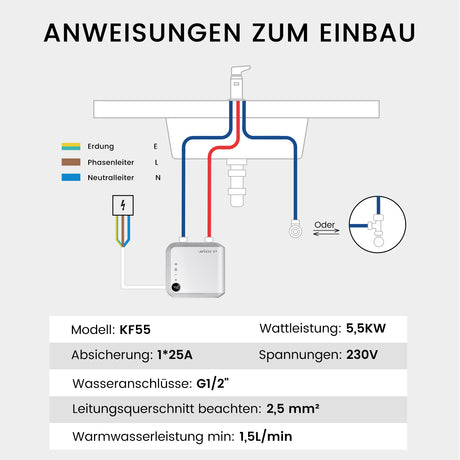 KF55 Sliver 230V / 5.5KW Point-of-Use Electric Tankless Water Heater