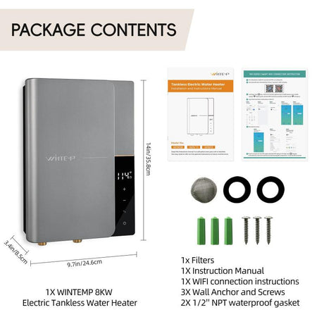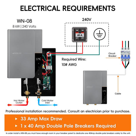 WN08 Gray 240V / 8KW Point of Use Tankless Electric Water Heater