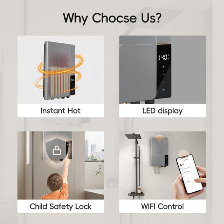 WN11 Gray 240V / 11KW Multiple Water Supply Tankless Electric Water Heater