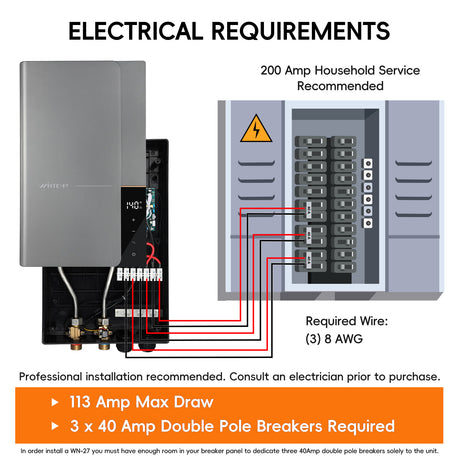 WN27 Gray 240V / 27KW Whole House Water Supply Tankless Electric Water Heater